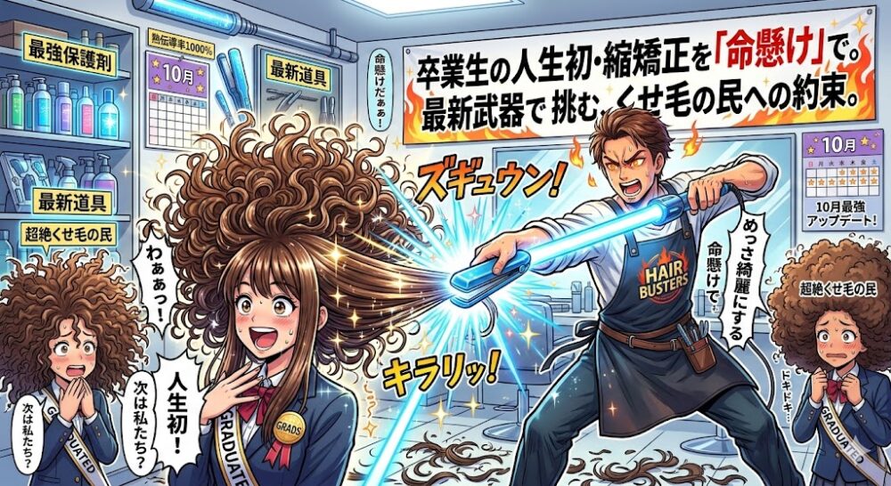 卒業生の人生初・縮毛矯正を命懸けで。最新武器で挑むくせ毛の民への約束。